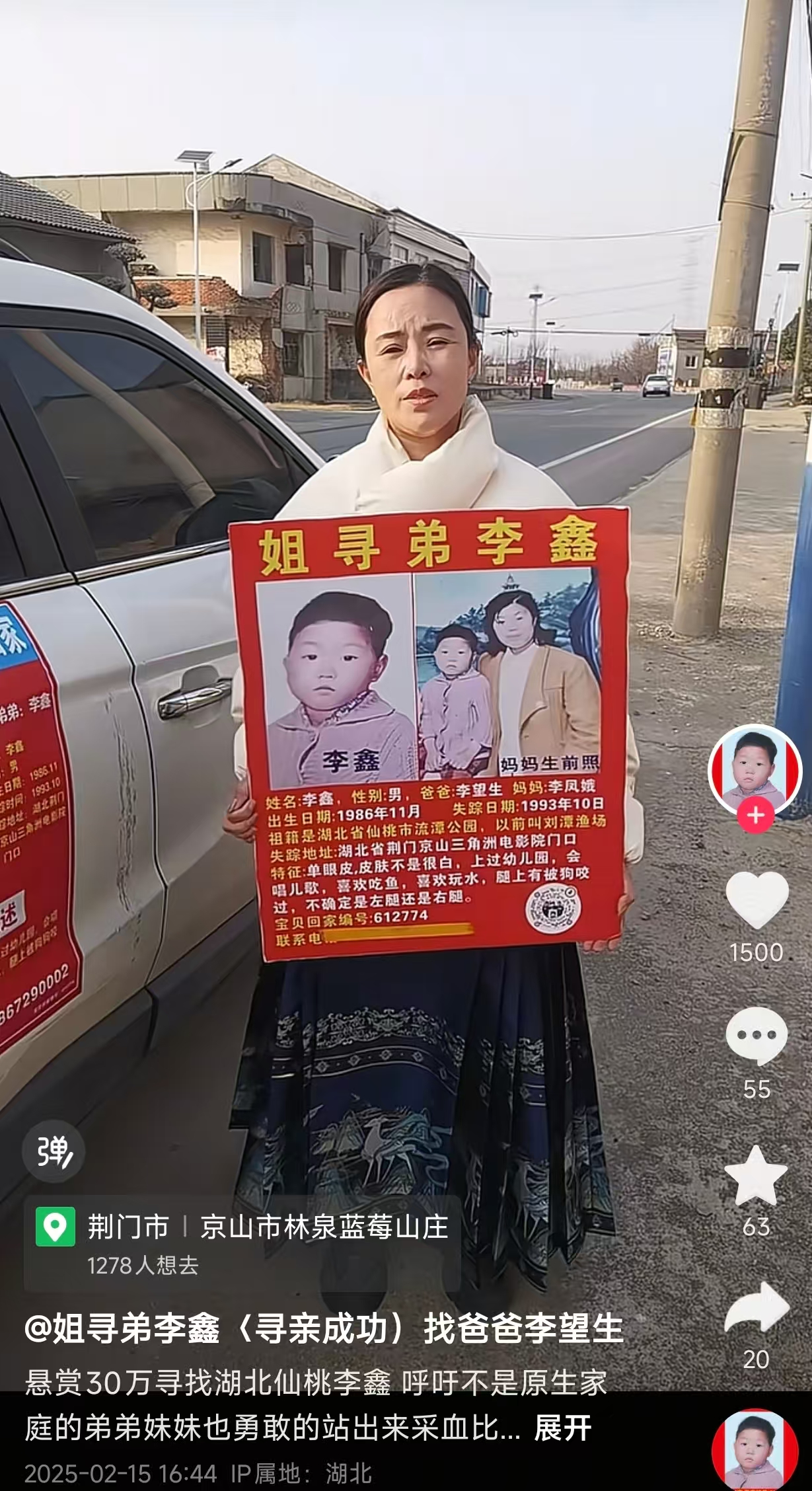 李林此前的寻亲履历曾被多家媒体报说念。据李林领路,他们的梓乡在湖北仙桃市刘潭渔场近邻,1993年他们的母亲离世后,父亲精神崩溃,也失踪不知所终。其后她和弟弟一齐出门捡废品时未必到达京山县,年仅六七岁的弟弟被一世疏东说念主带走,从此不知所终。四口之家只剩下她一东说念主。