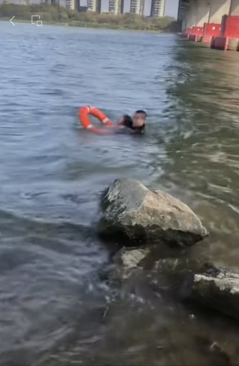 来不足多念念,洪湘楷立即脱下鞋袜,光脚步入阴寒的江水中,“我蓝本还念念把一稔脱掉,看她快不成了,速即下水去”。洪湘楷左手捏着救生圈,借着浮力来到女孩跟前,揽着她向岸边走去,江水已漫至其胸口位置,机敏的礁石踩上去阵阵散失,“她看上去20多岁,被水呛得很犀利”。