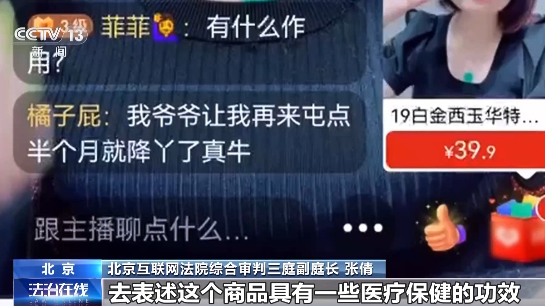 北京互联网法院笼统审判三庭副庭长 张倩:从这个案件推行来看,咱们也发现了在这一类商品销售流程中的一些问题,这些商家可能会遴荐一些模样去侧目平台的监管。比如在直播间直播的流程之中,不会成功提到商品有一些医疗保健的功效,通过其他模样,比如说雇用一些水军或者商家控评,去表述这个商品具有一些医疗保健的功效。还有商家可能把消费者导流到微信群中,进行一些不大致在商品销售平台上成功去进行宣传的违法内容。
