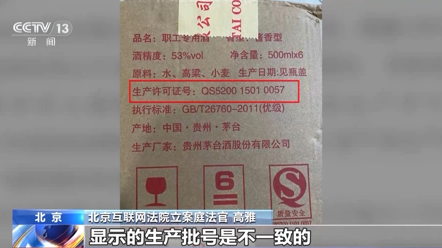 北京互联网法院立案庭法官 精湛:原告向法院提供了一份商场监管局的回话,显露酒厂品牌的坐褥批号,和原告所购买到的商品的外包装上显露的坐褥批号是不一致的。根据这些笔据,咱们不错看到原告所购买到的商品确乎是假冒商品,不仅伪造了坐褥商、品牌,也伪造了坐褥许可证。