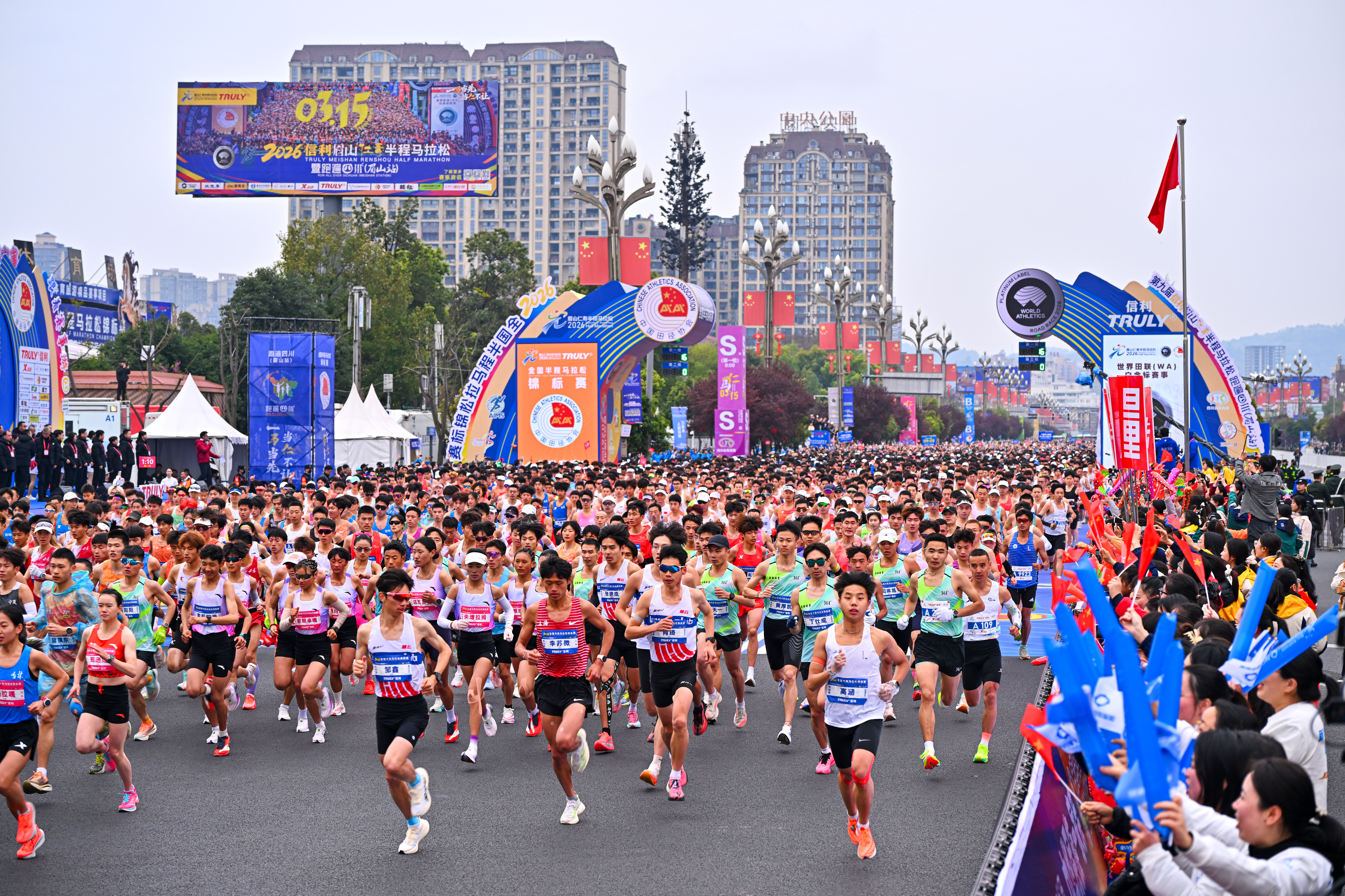 3月15日上昼9时,2026宇宙半程马拉松锦标赛暨第九届信利眉山仁寿半程马拉松(下文简称:眉山仁马)鸣枪开跑。看成世界田联白金标赛事,亦然2026年独逐个场宇宙半程马拉松锦标赛,本届眉山仁马共引诱来自世界各地的2万名跑友参赛。