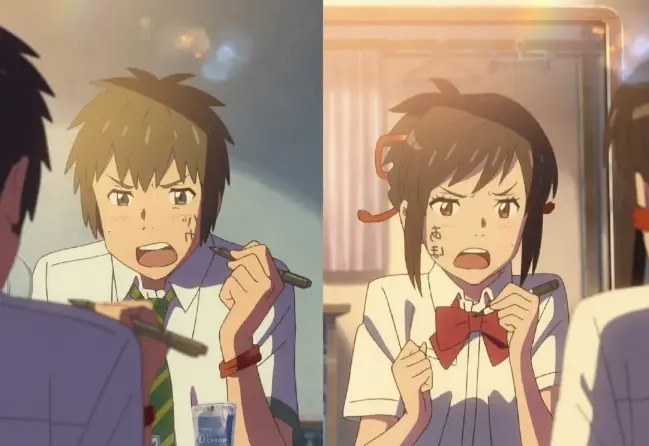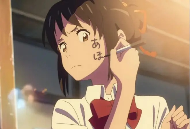 老练这部动画的东说念主齐知说念,“脸上写字”是泷和三叶之间最相配的互动。两个被奥秘力量绑定、频频互换肉体的少少小女,哪怕素昧生平,也会借着偶尔的“纠合”,在对方的脸上留住轻易的留言,或是小小的吐槽,莫得丽都的修饰,全是芳华期里最纯正的羁绊,这样多年,一直是好多东说念主心中的白蟾光名时局。